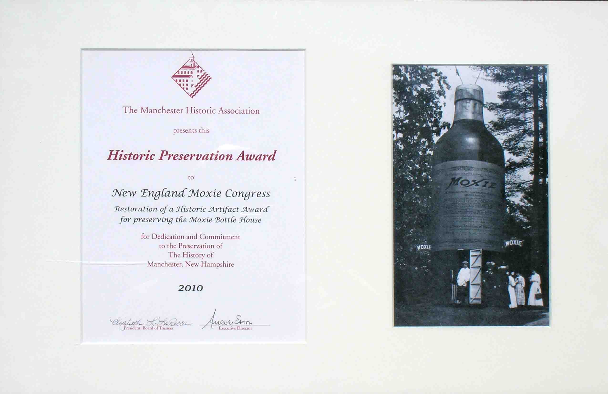 Association on May 13, 2010 for "Restoration of a Historic Artifact...for